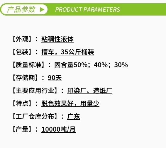 3.操作簡(jiǎn)單,用量小,效率高,脫色率大于 95%,不返色。